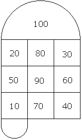 Þessi parís skýrir sig nokkuð sjálfur. Þið standið í reitnum sem er utan við parísinn og hoppið jafnfætis í götin eins og númerin segja til um. Þið byrjið í 10-gatinu farið eina umferð og síðan gerir sá næsti. Það má ekki stíga á strik eða hoppa í vitlausan reit og ekki hreyfa sig í gatinu svo að þið verðið að hugsa um að lenda svoleiðis að þægilegt sé að hoppa í næsta gat. Í næstu umferð byrjið þið á 20, síðan 30 o.s.frv.